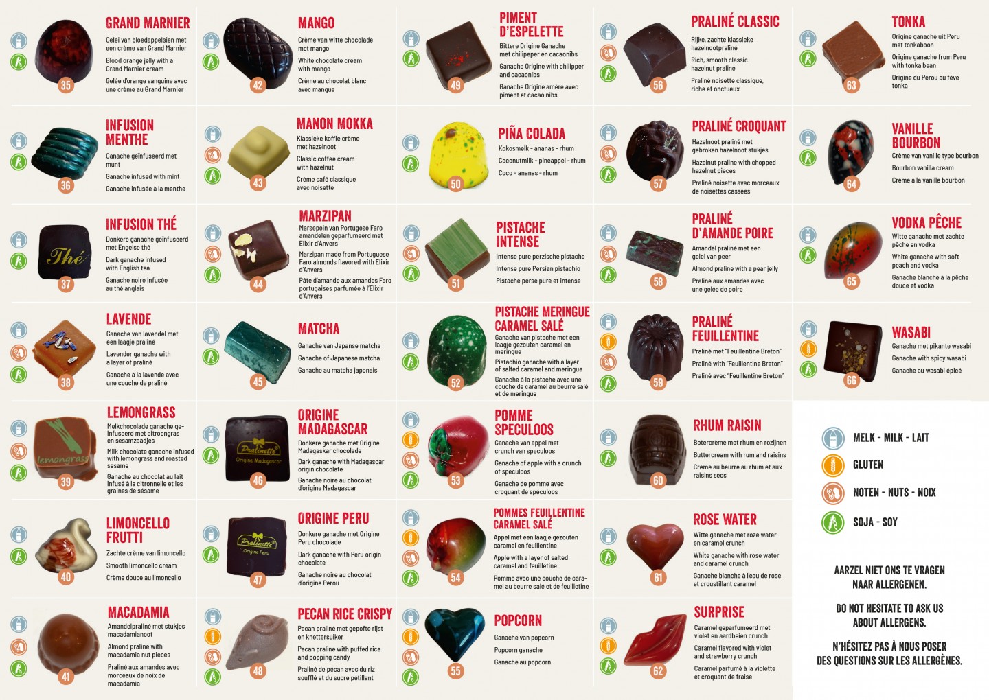 Overview chocolates Pralinette